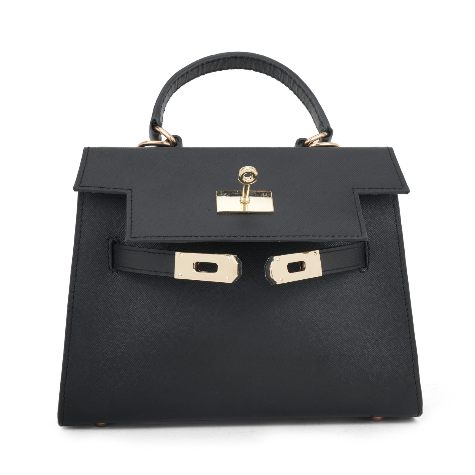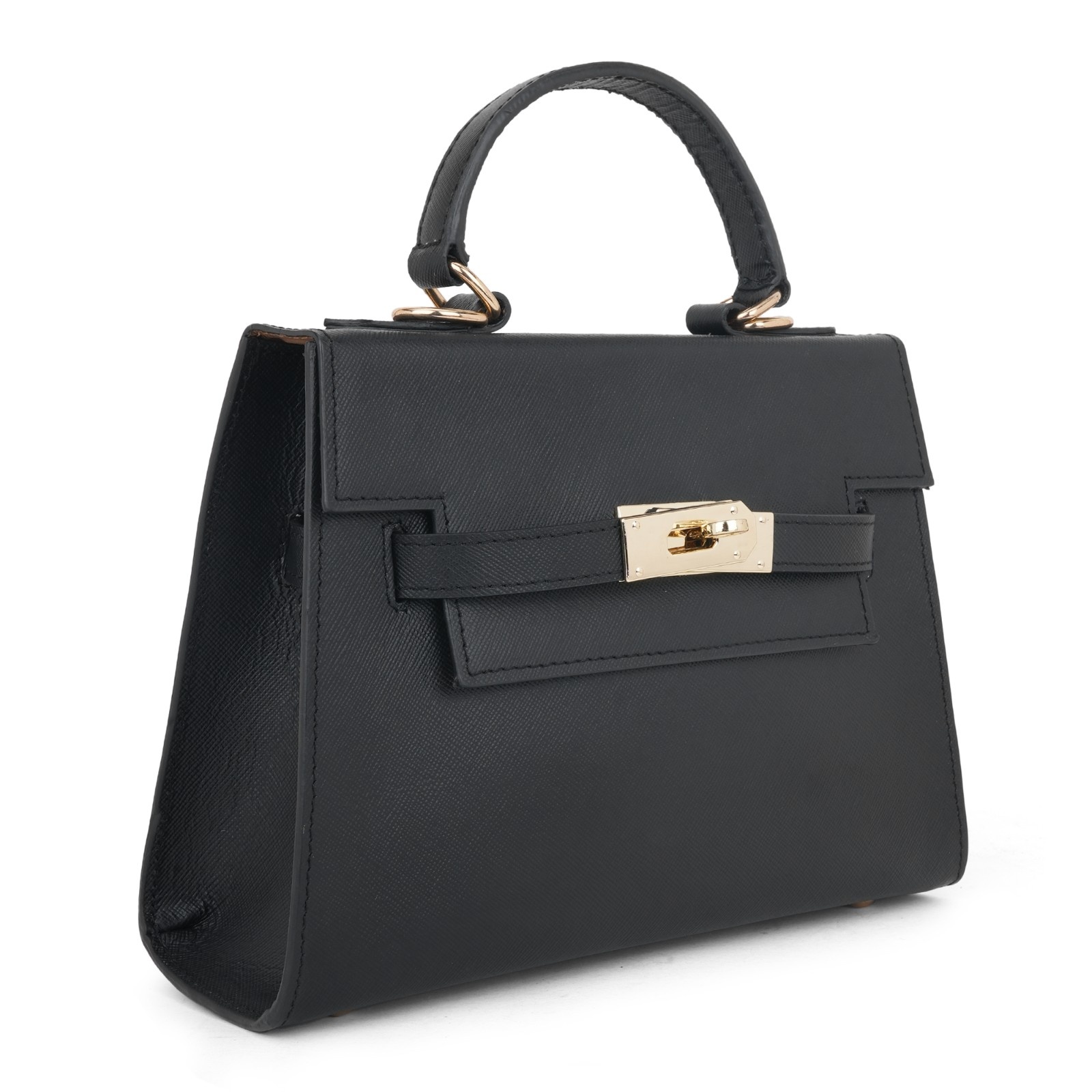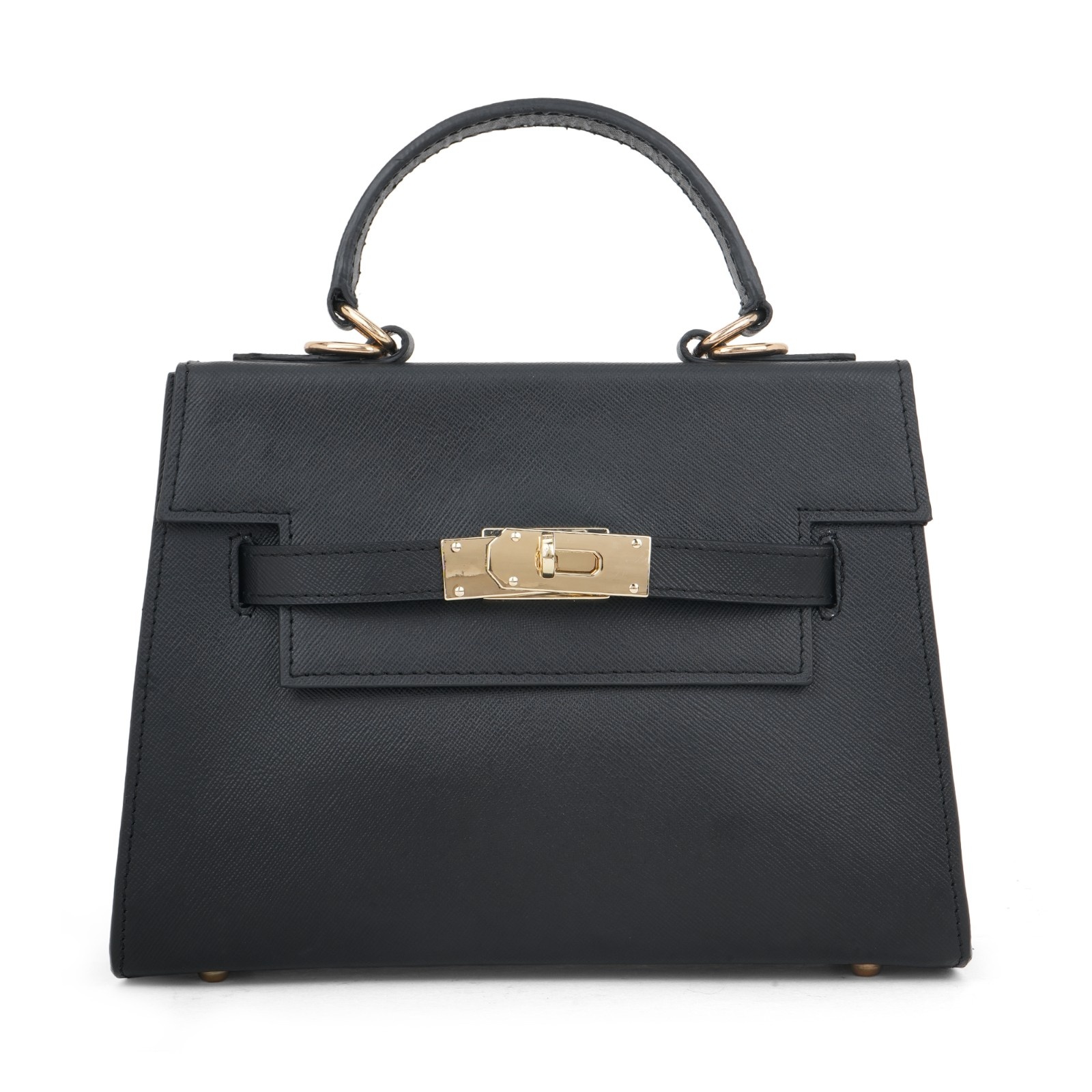 Elegant Black Saffiano Leather Top-Handle Trapezoid Bag