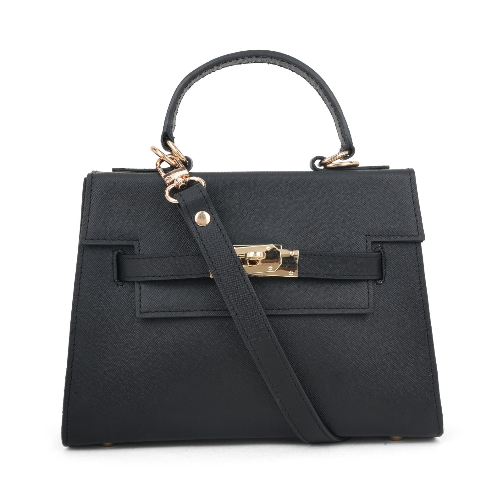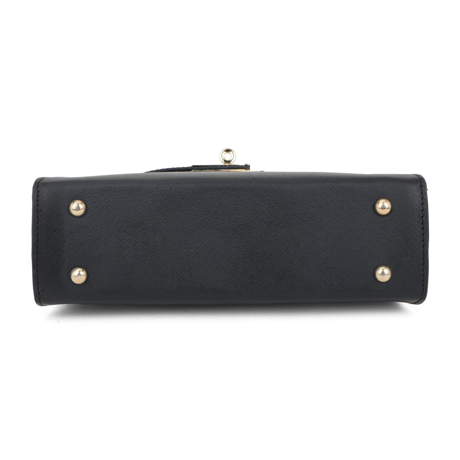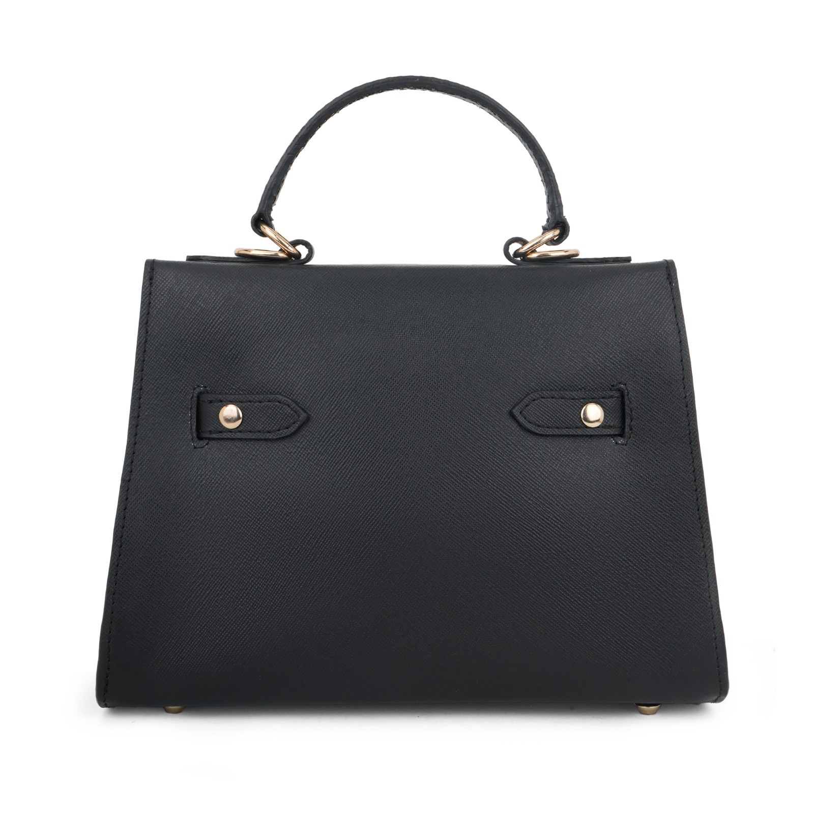 Elegant Black Saffiano Leather Top-Handle Trapezoid Bag