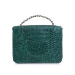 Hardware: The prominent gold-toned hardware, including the chic turn-lock closure and the elegant chain top handle, provides a beautiful contrast to the deep green leather. This metallic detailing enhances its high-end appeal and ensures secure closure.