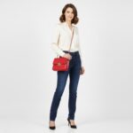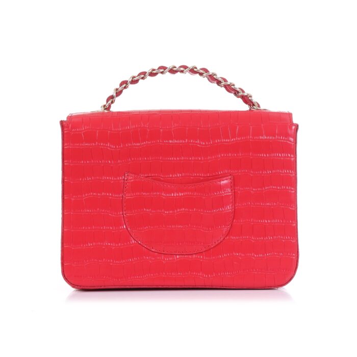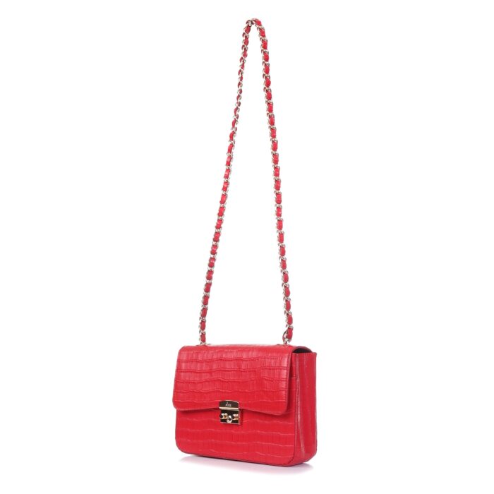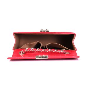Hardware: The prominent gold-toned hardware, including the chic turn-lock closure and the elegant chain top handle, provides a beautiful contrast to the deep Red leather. This metallic detailing enhances its high-end appeal and ensures secure closure.