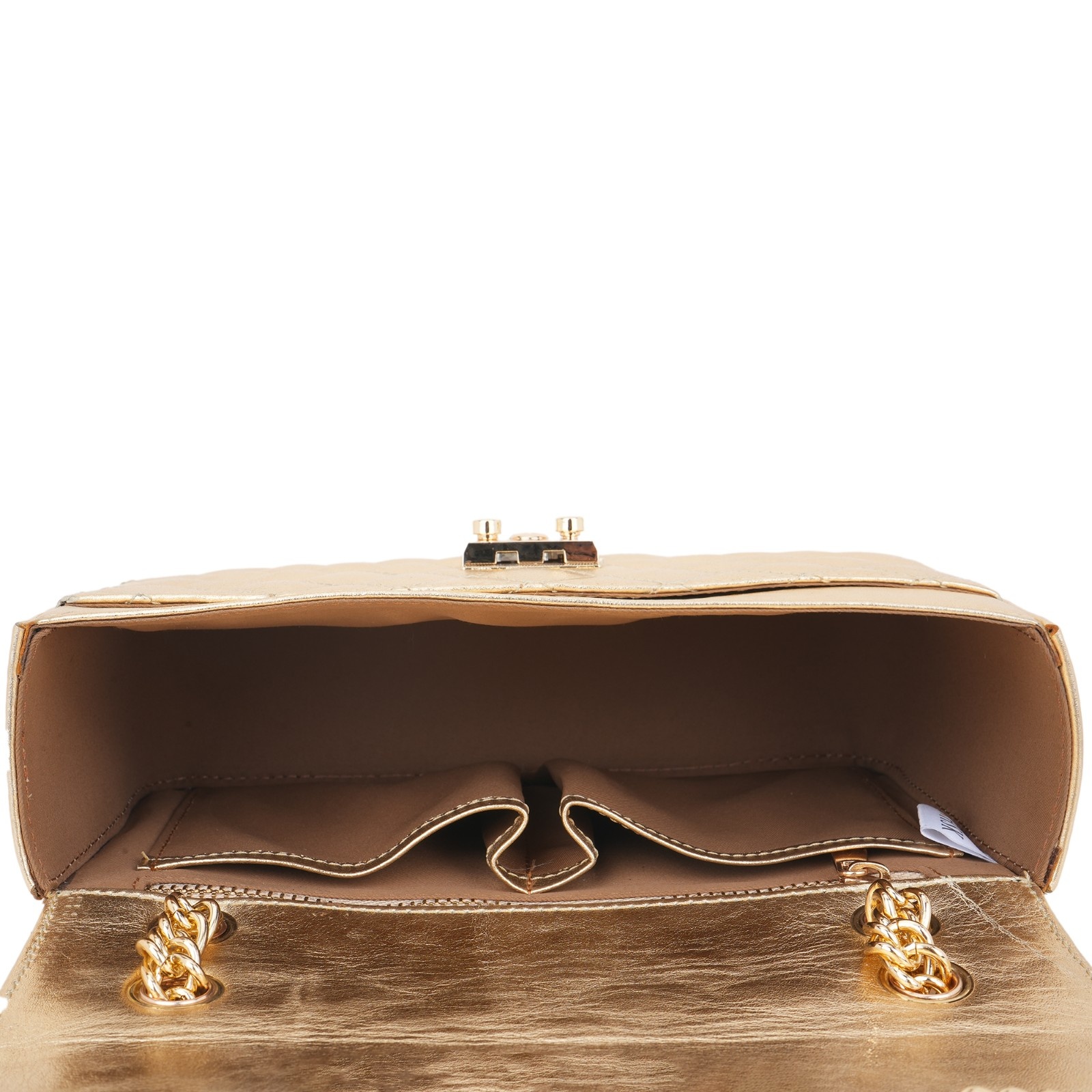 Quilted Texture: The bag features a classic diamond-stitched pattern that adds depth and a premium feel to the metallic leather.